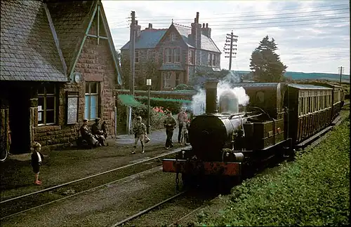In addition to the village, the station also served the nearby Glen Wyllin Pleasure Grounds, an area in a nearby valley which was developed in the 1890s as a private undertaking upon the arrival of the railway. This was once one of the most popular and profitable tourist destinations on the island. The line passed over the wide valley by means of a lattice girder bridge which was replaced in 1922 by a plate girder construction. The glen runs down to the sea where there is a long partly sandy beach that stretches along the island's north-western coast. The glen itself was later purchased and further developed by the Isle of Man Railway to include a boating lake, pedalos, swings slides and other children's attractions; the glen is fondly remembered by generations of local children whose annual Sunday School outing was often a trip on the train to visit the glen.