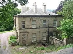 The building, originally known as Springfield House, was commissioned by Wright Rhodes, a local woollen mill owner who had erected Springfield Mill on Peniston Road in about 1820.[2][3] The site that he selected for his house was just to the northwest of the mill but within its grounds.[4]