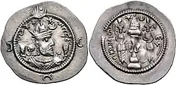 Shapur II (r. 309–379), after a successful campaign against several Arab tribes in Arabia, resettled some of them in different parts of his empire, such as Kirman, where he settled some Arabs in Aban.[3] During the reign of Shapur III (r. 383–388), his son Bahram IV governed Kirman, where he built the town of Shiragan, which would serve as the capital of the province for the remainder of the Sasanian period.[5][4] The town played an important economic role, as it served as a mint city and had a great agricultural importance to the province.[6] Khosrow I (r. 531–579) had a large part of the turbulent Pariz tribe massacred and deported. Furthermore, during his reign Kirman was brought under a huge cultivation, where many large qanats were built. According to a legend, extensive planting of trees was also made.[3] He also divided his empire into four military districts, known as kusts—Kirman became part of the Nemroz (southeastern) kust.