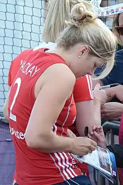 Kirsty MacKay (16 November 1986) is a goalkeeper for England national women's field hockey team.[1] She plays club hockey in the Investec Women's Hockey League for Bowdon Hightown.