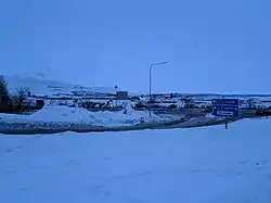 In June 2010, the municipal council decided that the town would be moved eastwards (to 67°51′1″N 20°18′2″E / 67.85028°N 20.30056°E), in the direction of Tuolluvaara, instead of the proposed northwestern location.[35] The moving of the town was started in 2014, and the plan describes a process that continues to 2100.[36] In the years 2012-2013, an international architectural competition concerning the vision, strategy, and design of a new city centre for a new Kiruna was arranged by the Municipality of Kiruna in partnership with the Swedish Association of Architects. White Arkitekter AB, based in Gothenburg, together with Ghilardi + Hellsten Arkitekter, based in Oslo, Spacescape AB, Vectura Consulting AB, and Evidens BLW AB, won the competition with their masterplan and strategy for moving the city. The competition team was led by White Arkitekter AB, lead architect Mikael Stenqvist, SAR/MSA, in collaboration with Ghilardi + Hellsten Arkitekter, lead architect Ellen Hellsten.[37] Together with researchers from Luleå and Delft universities, it envisages a denser city centre with a greater focus on sustainability, green and blue infrastructure, pedestrians, and public transport rather than automobiles.[38] In 2018, the Swedish government announced that it would help arrange replacement work for radio corporation Radiotjänst after the city had been moved from its original location.[39]