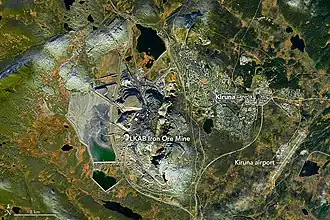 ![]() Kiruna Mine and townsite from Landsat, 2016 | |