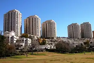 Kiryat Wolfson (Hebrew: קריית וולפסון), also known as Wolfson Towers, is a high-rise apartment complex in western Jerusalem. Comprising five towers ranging from 14 to 17 stories above-ground,[1] the project was Jerusalem's first high-rise development.[2] The project encountered opposition from both municipal officials and the public at each stage of its design and construction.[2] The complex includes 10,000 square feet (930 m2) of commercial space and a medical center. The project was financed by the Edith and Isaac Wolfson Trust.[3]