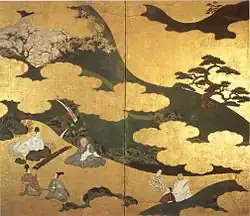 Orikuchi argued that stories about wandering nobles contain three core elements: a hero of divine birth, the theme of exile, and the movement of the protagonist from a center to a remote margin.[3] The hero is typically a person of high social standing, such as a deity, emperor, or court noble,[4] though stories also focus on other social classes such as criminals and pilgrims.[5] A defining trait of a kishu ryūritan story is the manner in which the hero begins their exile as powerless, but as a result of those they encounter during their wanderings, acquire greater or even god-like powers.[6] Orikuchi saw the archetype as representing a crucial link between early oral accounts of gods and mythical figures collected in the Kojiki, and the emergence of more formalized Japanese historical and literary traditions.[7]