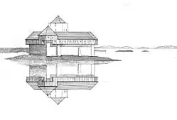 Floor plan of Kisimul Castle, Scotland, United Kingdom. 1 Keep 2 Kitchen 3 Tanist House 4 Postern 5 Marion of the Head's Addition 6 Great Hall 7 Watchtower 8 Chapel 9 Gockman's House 10 Courtyard 11 Gate 12 Slipway 13 Creek 14 Breakwater wall 15 Crew's house