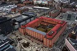 Kista is the largest corporate area in Sweden and important to the national economy.[1] The construction of the industrial section of Kista began in the 1970s with companies such as SRA (Svenska Radioaktiebolaget, now a part of Ericsson), RIFA AB (later Ericsson Components AB, and later still Ericsson Microelectronics AB, and now Infineon Technologies), and IBM Svenska AB (the Swedish branch of IBM). Ericsson has had its headquarters in Kista since 2003.[7] Cellmax is another local company founded and headquartered in Kista.