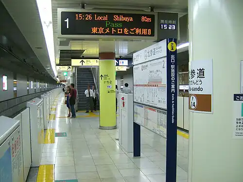 Kita-sando Station (北参道駅, Kita-sandō-eki) is a subway station on the Tokyo Metro Fukutoshin Line in Shibuya, Tokyo, Japan, operated by the Tokyo subway operator Tokyo Metro.