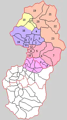 With the establishment of the municipality system on April 1, 1889, the district was consolidated into 23 villages.
