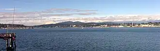 ![]() Kitsap Lookout southeast aspect from Port Orchard, left of center. Right of center is Gold Mountain. | |