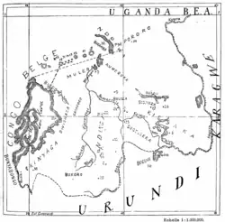 In December 1908 John Methuen Coote returned to Uganda from leave in Europe and was again posted to the Bukedi District. Almost as soon as he arrived the District Commissioner, Sydney Ormsby, died. Coote took over as District Commissioner at Mbale.[10] At the end of May 1909 a runner brought Coote orders to report to Entebbe. There he was told to go to Mbarara and there take charge of a mixed force of Sikhs, King's African Rifles and Police as Political Officer. With this force he was to establish a post on Lake Kivu and to administer the surrounding district.[10] Coote did not waste time. He left Entebbe on 7 June and the expedition left Mbarara on 11 June 1908.[11]