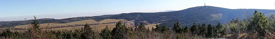 View of Klínovec from Fichtelberg (meridian a 1864 fixed point from at the front) -