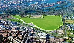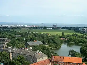 Kløvermarken is the last undeveloped section of Christianshavns Fælled, which used to serve as a military training area. The name Kløvermarken is first seen in 1847.[1] At that time the area reached all the way to the Øresund coast where the Stricker Battery had been constructed in 1801 as the most southernly point on Copenhagen's fortifications. It was expanded in 1875–76 but decommissioned in 1914 and removed in 1965 to make way for.