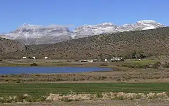 It is situated at the northern end of Meiringspoort, about 60 km east of Prince Albert and 95 km north-west of Uniondale. Originally named Pietersburg, its present name, Afrikaans for 'clear stream', probably refers to waters flowing from the Swartberg into the lowlands.[2][3]