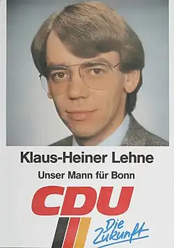 Lehne joined the Christian Democrats when he turned 18, in 1975. He became a member of the City Council of Düsseldorf in 1984.