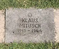 Posthumously, Mietusch was awarded the Knight's Cross of the Iron Cross with Oak Leaves (Ritterkreuz des Eisernen Kreuzes mit Eichenlaub) on 18 November 1944.[64] He was the 653rd member of the German armed forces to be so honored. Mietusch was buried in the honor section of the Düsseldorf Northern Cemetery (Field 112-Section 0-Grave 117).[3] Caldwell characterized Mietusch as a very nervous man with limited social skills. According to Caldwell's account, Mietusch never interacted with non-commissioned officers, overcoming his lack of self-confidence by an act of will.[65]