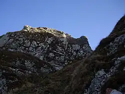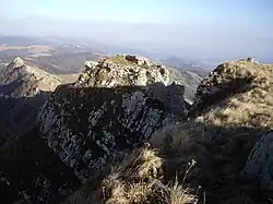 Kldekari Fortress (Georgian: კლდეკარის ციხესიმაგრე) is a historical fortress in Georgia, Trialeti, on a rocky peak of Trialeti Range near spa town Manglisi, Tetritsqaro Municipality. From here you can see the area around the south, Tsalka and Manglisi, as well as the north - river Tana and Tedzami Valleys. The fortress ruins are currently preserved. It was located at an important crossroads, where a molten rock formed an exit; the name Kldekari means the rock door.[1]