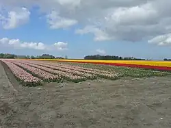 Kleine Huisjes was part of a salt marsh wall which was about 1 metre above sea level. Habitation started in the 11th or 12th century, and the land was protected by a dike around 1250.[6] In the mid-18th century, little houses were constructed for the workers who poldered the land and worked on the farms.[5] In 1827, it was first mentioned as Lutjeboeren (Little Farmers). Around 1900, the village was referred to as Kleine Huisjes on maps.[3]