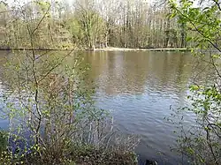 The Buschgraben is a glacial meltwater channel, located on the southwest border of Berlin, stretching in a north–south direction between the localities of Berlin-Zehlendorf and Kleinmachnow, ending at the Teltowkanal northwest of Teltow. The region of Kleinmachnow contains several small bodies of water, formed from dead ice holes. The Meiereipfuhl in the Bannwald formerly held five ponds, this has since reduced with the Duellpfuhl an der Ginsterheide, Pferdepfuhl, and Pfuhl am Jägerstieg/Ecke Wolfswerder serving as receptacles for roadway surface water today.