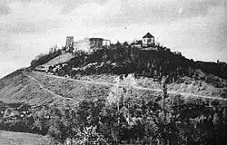 Early in September 1939 war arrived from the west and, sixteen days later, from the east. An early taste of war came to Winna Góra later that month when Lieutenant Andrzej Mańkowski (as her husband had by now become) was seriously shot and for the time being immobilised by his own subordinates because he had angrily upbraided a group of Polish soldiers for mistreating a captured German officer in ways that would have offended his own conscience and breached the Geneva Conventions.[6] The German prisoner had been stabbed in the eye with a bayonet.[6][1] At this stage they were playing host to two "old school" German officers who had arrived on a couple of motor bikes six days after the launch of the German invasion, and who were surprised to find Klementyna Mańkowska and her children ensconced in the castle. Others, elsewhere in the area, had already fled. Beyond the estate, the village was deserted.[7] The officers assured the Mańkowskis they would need only one of the three floors of the castle, modestly furnished.[8] There are powerful indications of a brief but intense romance involving one of them.[8] A month later the Gestapo arrived and the family were thrown out of their home at Winna Góra.[4] The castle had been selected as a present/trophy for Field Marshal Wilhelm Keitel.[8]