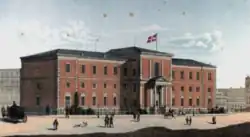 No. 2 was built for the Freemasons between 1867 and 1869 to a design by Vilhelm Tvede. The building was replaced by the Freemasons' Hall on Blegdamsvej in 1927. For a while, in the 1930s, the building then served as a cinema under the name Palæbiografen. In 1972–74, Helge Bonnesen adapted the building for its current use as the home of the Section of Musicology at the University of Copenhagen.[2]