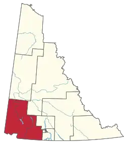 Census subdivision(s)Beaver Creek, Burwash Landing, Champagne Landing 10, Destruction Bay, Haines Junction, Ibex Valley (part), Kloo Lake, Klukshu, Macpherson-Grizzly Valley (part), Whitehorse, Unorganized (part), Yukon, Unorganized (part)
