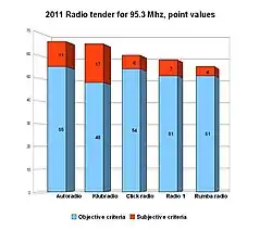 The parliamentary elections of 2010 caused a serious impact on the run of Klubrádió. The commercial station lost its financial integrity because many companies and agencies stopped advertising in Klubrádió for fearing of political consequences, and it almost went bankruptcy. After the victory of the right-wing party Fidesz securing the 2/3 majority in Parliament, Klubrádió became the number one enemy in the eye of the ruling party. In addition, in February, 2011, the broadcast license of Klubrádió expired but it continued broadcasting anyway due to temporary licenses, which were granted on a regular basis. Three tenders for three Budapest frequencies were advertised in mid-2011 with identical terms and conditions. Klubrádió have only submitted a tender offer for one of them, without providing a reason as to why it did not consider the others viable. The tender was preceded by intense lobbying for Klubrádió; various pressure groups tried to ensure that tender invitation is construed in such a way that only Klubrádió could win.[15] Klubrádió had issued several suggestions in open hearings before the tender was finalized. First, Klubrádió suggested that the frequency should be based on the premise of public service frequency, where the license fee might be zero forints. If the frequency were to be a commercial frequency, Klubrádió have suggested a license fee of 6 million forints.[16] During the actual tender, Klubrádió itself have offered to pay 55 million forints for the frequency, almost ten times of its original suggestion. This resulted in claims that the original Klubrádió suggestions were provocative.[17] However, according to the tender, the would-be winner of 95,3 MHz should be broadcasting mainly music and local news that implied the possible loss of Klubrádió knowing a talk and news station would not have a chance to be in accordance with the new premises. After closing the tender, Autorádió gained first place for 95,3 MHz with 66 points, because Klubrádió refused to bid for the other two frequencies with identical terms, this raised the possibility of losing a Budapest frequency.[18] Klubrádió came in second with 65 points, the pressure intensified to achieve overturning the decision. In Hungary, all tender decisions are subject to legal review, and when the management of Klubrádió launched a suit for the frequency, a court case began. Klubrádió did not argue that they should have received more points, rather they claimed that the winner's offer was „unrealistic" and should have been disqualified. Klubrádió added that they judged all bids over 53 million were „unrealistic".[19] The argument would also disqualify Klubrádió's own bid of 55 million forints of yearly broadcasting fee. While the court case was still in progress, there were reports of more outside pressure trying to ensure Klubrádió's gain of the frequency. Klubrádió and the mainstream media also attacked the winners of the tender Autoradio for being a startup company without relevant experience in broadcasting, founded in early 2011, even though Monográf Rt, the owner of Klubrádió was just a month older at the time it acquired Klubrádió.