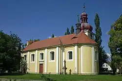 The main landmark of Kněževes is the Church of Saint James the Great. The original church was first mentioned in 1318. After it was destroyed by fire in 1718, it was replaced by the current Baroque building in 1721, designed by the architect František Maxmilián Kaňka.[6]