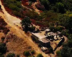 Knapp's Castle is a privately owned landmark ruined mansion in the Santa Ynez Mountains near Santa Barbara, California. Built in 1916 by George Knapp, the estate included 5 bedrooms, an organ room, and even an observatory. Located near East Camino Cielo in the Los Padres National Forest, the ridge-top site has a panoramic view of Lake Cachuma and the Santa Ynez Valley. It was a popular destination for hikers and photographers. The site is no longer open to the public.