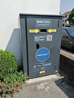 A knife bin, also known as a knife bank, weapon surrender bin, knife amnesty bin or knife amnesty bank, is a place where the owners of knives may dispose of them in a safe and legal way. Knife bins are associated with attempts to reduce knife crime and may be sponsored by the police or churches.[2][3][4][5][6]
