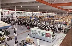 On August 21, 1991, Knob Hill Farms opened a terminal in Cambridge, Ontario, the first outside the Greater Toronto Area. The terminal measured 340,000 square feet (31,500 square metres), making it the largest food retail store in the world. It was estimated that the terminal saw over 20,000 customers on opening day, with hour long lines and traffic jams surrounding the store. The store featured 5,250 ft (1,600 m) of refrigeration units, a 500 ft (150 m) meat counter and 1,500 parking spaces.[8]