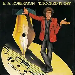 "Knocked It Off" is a song by Scottish musician BA Robertson, released in October 1979 as the third single from his debut album Initial Success. It became his second Top-Ten hit in the UK, peaking at number 8 on the Singles Chart.[1] The song features a sarangi by Neil Sorrell.[2] The title "Knocked It Off" means, in this context, to become a success somewhat unexpectedly. The lyrics criticise celebrity life, making references to pop and football fame.