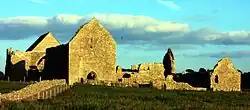A section at the south end of the church formed the refectory. In the eastern end of the refectories south wall is an opening 2.7 metres (9 ft) wide, which would have featured steps leading up to a rostrum.[16] Next to the refectory, to the south east, is a section of the monastery the function of which is difficult to ascertain. The walls here are in very poor condition, and having been reshaped several times to serve as a fence, give no indication as to the original placement of the windows.[14] This may possibly have been the novices' rooms.[15]
