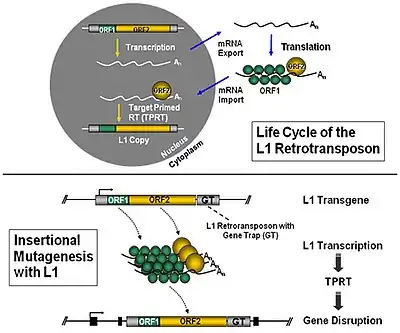 - ^ Ostertag, E.M., et al., A mouse model of human L1 retrotransposition. Nat Genet, 2002. 32(4): p. 655-60.