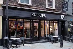Knoops, (pronounced "kuh-noops"),[1] is a British chocolate café chain and retailer based in London, England.[2][3] The business operates a chain of cafes known for its hand-crafted chocolate drinks.[2][4] The chain was launched in 2013 and, as of January 2025, has outlets in 24 locations in the UK and one in Dubai.[2][5][6][7] The company also produces drinking chocolate and other products which are sold in their cafes, premium retailers Selfridges, Harrods, Whole Foods and online.[2][8]