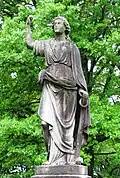 The first people to form substantial settlements in what is now Knoxville were indigenous people who arrived during the Woodland period (c. 1000 B.C. to 1000 A.D.).[22] One of the oldest artificial structures in Knoxville is a burial mound constructed during the early Mississippian culture period (c. 1000–1400 A.D.). The earthwork mound has been preserved, but the campus of the University of Tennessee developed around it.[23]