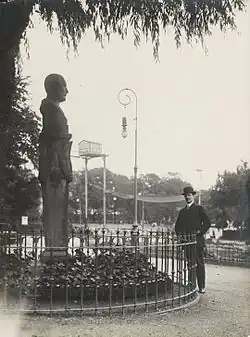 ![]() Knud Arne Petersen at the bust of Georg Carstensen in Tivoli Gardens | |