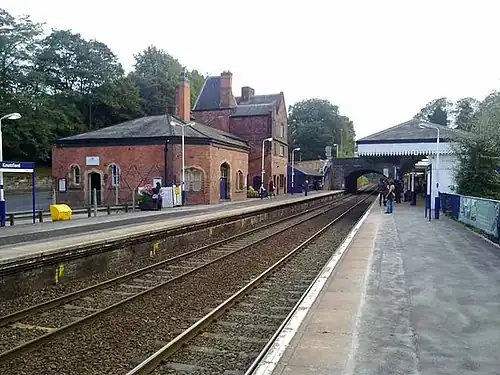 Knutsford railway station serves the town of Knutsford in Cheshire, England. The station is 21+3⁄4 miles (35.0 km) south of Manchester Piccadilly on the Mid-Cheshire Line to Chester. The line is referred to as the Chester via Altrincham line at Manchester Piccadilly, but as the Manchester via Stockport line at Chester station.