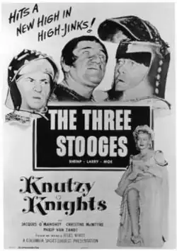 Knutzy Knights is a 1954 short subject directed by Jules White starring American slapstick comedy team The Three Stooges (Moe Howard, Larry Fine and Shemp Howard). It is the 156th entry in the series released by Columbia Pictures starring the comedians, who released 190 shorts for the studio between 1934 and 1959.