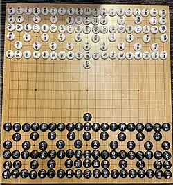 Kō shōgi (広将棋 or 廣象棋 'broad chess') is a large-board variant of shogi, or Japanese chess. The game dates back to the turn of the 18th century and is based on xiangqi and go as well as shogi. Credit for its invention has been given to Confucian scholar Ogyū Sorai (1666–1728), who had also described the rules of the game in his book, Kōshōgifu (廣象棋譜).[1][2]