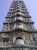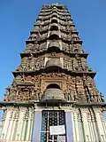 There are intricately carved statues depicting scenes from Ramayana, Mahabharata, and Bhagavatam on the four sides of the gopurams in each floor. The Sikhara of the temple is carved with statues depicting Bala Ramayana (childhood of Rama).[2] Devotees can reach the top storey of the gopurams through a 300-step climb.
