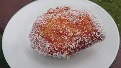 A koesister or koe'sister[1] is a traditional Cape Malay pastry often described as a spicy dumpling with a cake-like texture, finished off with a sprinkling of coconut.[2]