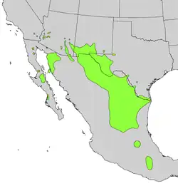 Koeberlinia spinosa can be found in northern regions of the Mexican Plateau and in the east down into the northern foothills of the Sierra Madre Orientals. In the west it ranges into the southern, and central Sonoran Desert of Sonora, and southern and southwestern Arizona; it also ranges into three areas of Baja California Sur-(part of the Sonoran Desert).[2]