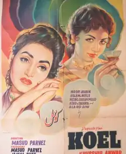 Koel is a Pakistani 1959 musical romantic drama film directed by Masood Parvez. The film stars Noor Jehan with Aslam Pervaiz, Neelo and Allauddin in supporting roles.[1][2]