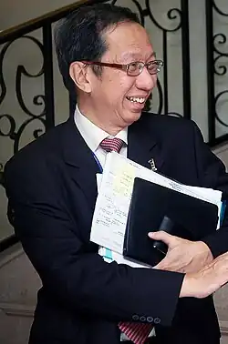 Koh Tsu Koon (born 26 August 1949; simplified Chinese: 许子根; traditional Chinese: 許子根; Pe̍h-ōe-jī: Khó͘ Chú-kun; pinyin: Xǔ Zǐgēn) is a Malaysian politician. He was the Chief Minister of Penang from 1990 to 2008, Member of Parliament (MP) for Tanjong from 1982 to 1986 and was appointed as a Senator from 2009 to 2015. A year after resigning as Chief Minister of Penang, Koh was appointed Minister in the Prime Minister's Department by Prime Minister Najib Razak. He was famously known for contributing in the Sungai Pinang campaign where he took almost 10 years and failed to complete it.