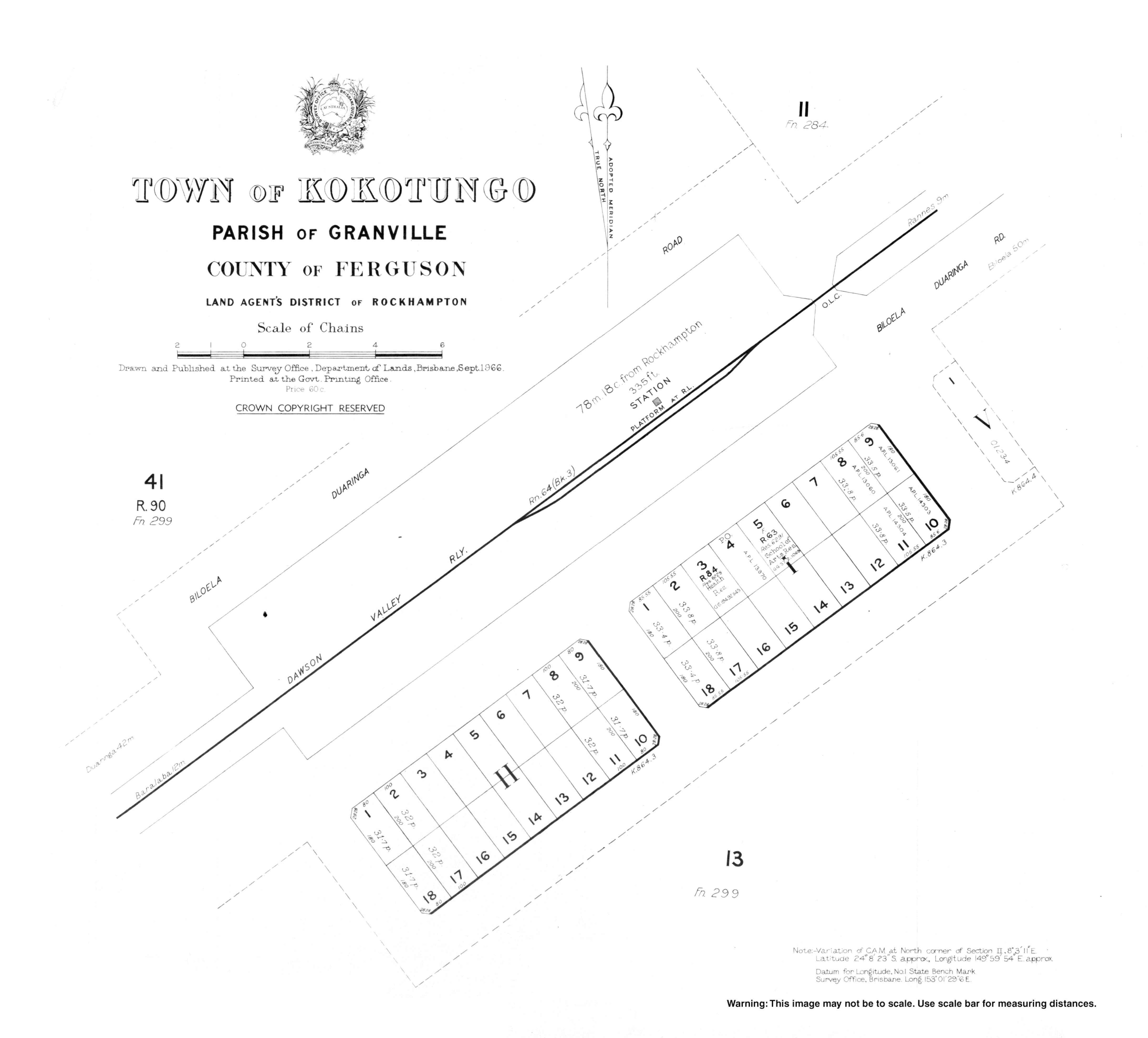 Town lots were sold in the town of Kokotungo beside the railway station in February 1938.[8]