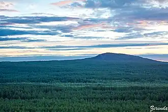 Kokshetau National Park (Kazakh: Kökşetau ūlttyq parkı) features the unique landscape, archaeological sites, and recreational opportunities of the Kazakh Uplands of northern Kazakhstan. Located in the transition zone between the Siberian taiga (to the north) and the southern steppes, the terrain is an "island" of forests, lakes, and mountains surrounded by steppe.[1] Kokshetau is located in Zerendi District, Aqmola Region and Aiyrtau District, North Kazakhstan Region. The park boundary is 45 kilometres (28 mi) west of the city of Kokshetau itself, and 275 kilometres (171 mi) northwest of the capital city of Nur-Sultan.