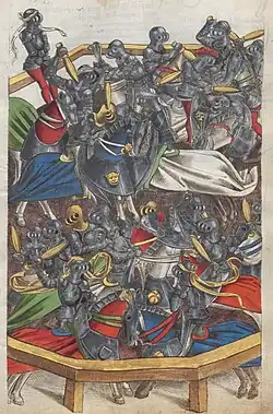 - ^ a b c Clephan, R. Coltman (1995). The mediaeval tournament. New York: Dover Publications. p. 42. ISBN 0-486-28620-7. OCLC 31753704.