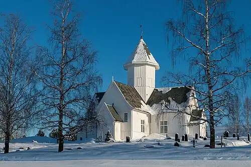 Kolbu Church (Norwegian: Kolbu kirke) is a parish church of the Church of Norway in Østre Toten Municipality in Innlandet county, Norway. It is located in the village of Kolbu. It is the church for the Kolbu parish which is part of the Toten prosti (deanery) in the Diocese of Hamar. The white, wooden church was built in a cruciform design in 1730 using plans drawn up by an unknown architect. The church seats about 400 people.[1][2]