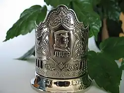 Russian tableware plant Kolchug-Mizar is the largest manufacturer of tableware, plate and cutlery in Russia. It was founded in 1871. The plant is situated not far from Moscow (Kolchugino, Vladimir region). Kolchugino plant is well-known most because of popular kolchugino tea glass-holders or podstakanniks (Russian: подстаканник).[1]