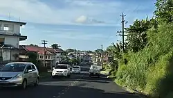 Kolonia Town is located in the north central section of Pohnpei Island. It was formerly part of Nett municipality but has been a separate municipality since May 1965. The population of the town was 6,074 (2010 Census).[1] It is the largest population center on Pohnpei and the commercial hub of the island. The land area of Kolonia amounts to 1.5 km2, with a large number of buildings lying just outside the town limits. The official languages are Pohnpeian and English. Mercedarian Missionaries speak Spanish.